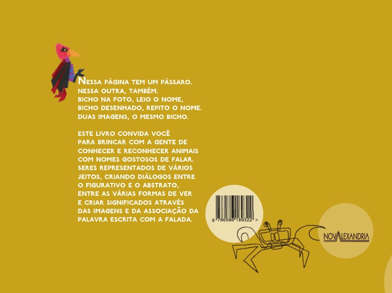 Este livro convida você para brincar com a gente de conhecer e reconhecer animais com nomes gostosos de falar. Seres representados de vários jeitos, criando diálogos entre o figurativo e o abstrato, entre as várias formas de ver e criar significados através das imagens e da associação da palavra escrita com a falada.